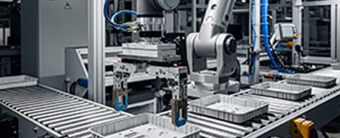 - Einsatz von Fördertechnik, Robotern, Greifern sowie Sensorik zur Positionserkennung