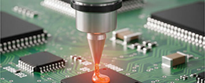 Gezieltes Aufbringen einer speziellen Vergussmasse auf elektronische Komponenten