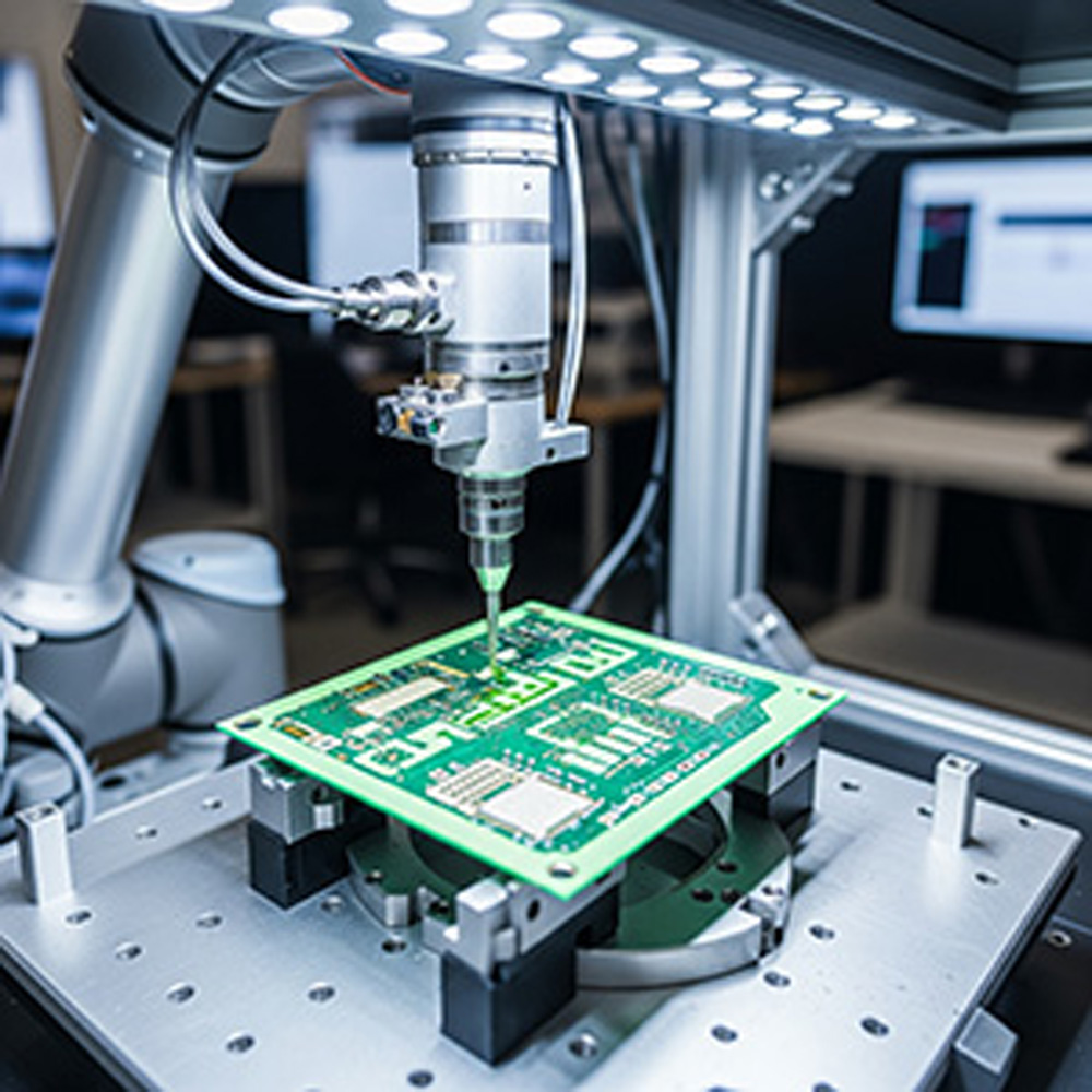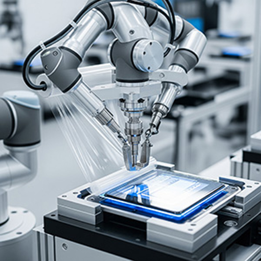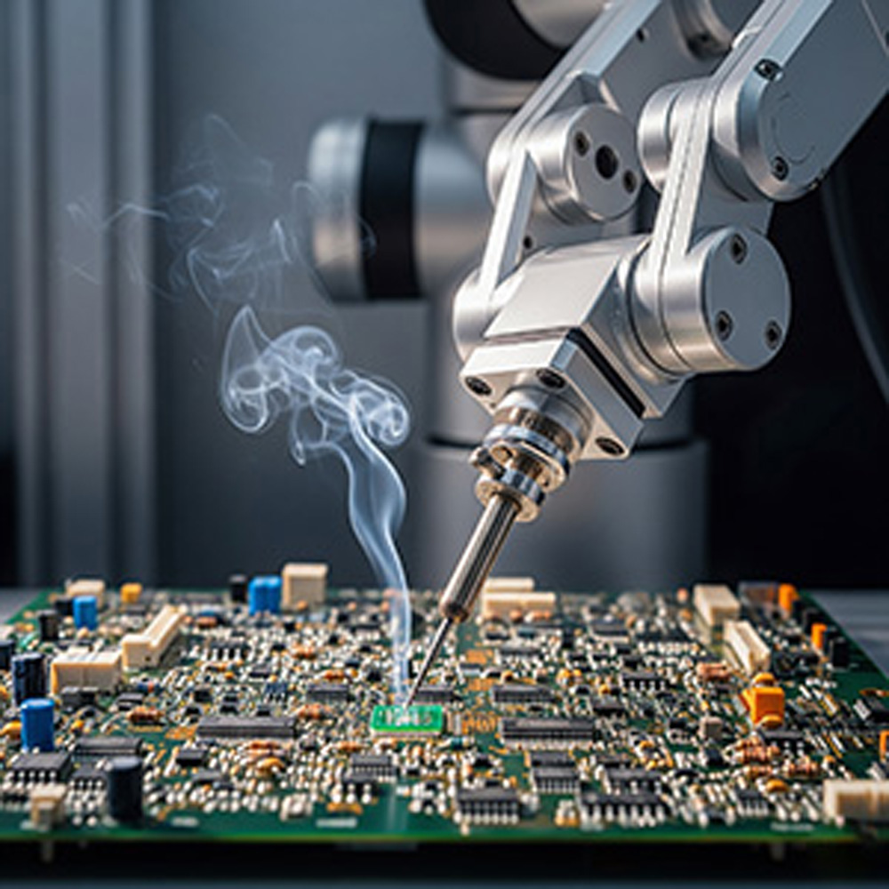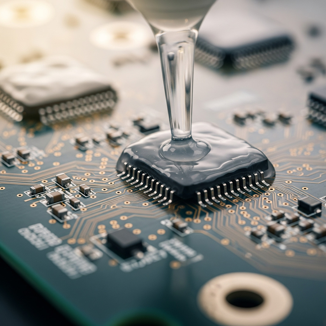 Die gezielte Dosierung von Underfill-Material eignet sich ideal, um Mikrochips und Bauteile auf Leiterplatten mechanisch zu stabilisieren und thermisch zu entlasten. Der Prozess verhindert Risse und Kontaktversagen durch Ausdehnungen und Vibrationen.